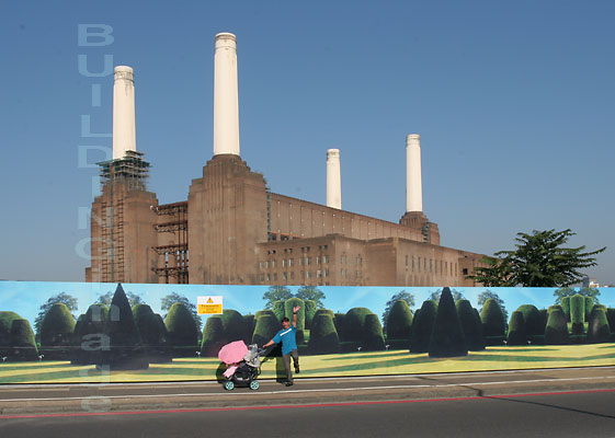 Description: Battersea power station awaiting redevelopment, behind hoardings; © Christopher Lee Marsh