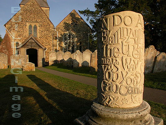 Description: Calligraphy on stone in churchyard, Shere, Surrey; © Christopher Lee Marsh