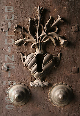 Iron keyhole and studs on a door at Almeria Cathedral, Southern Spain; © Christopher Lee Marsh